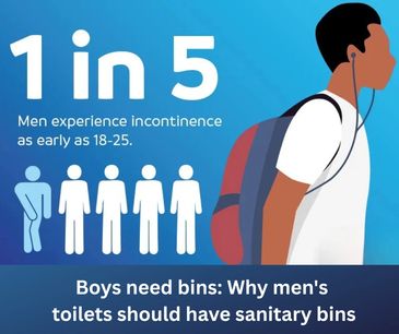 Incontinence can be a side effect of cancer and treatment. Lack of sanitary bins in male toilets affects men who need to wear pads, pouches, stomas, catheters, colostomy or ileostomy bags.